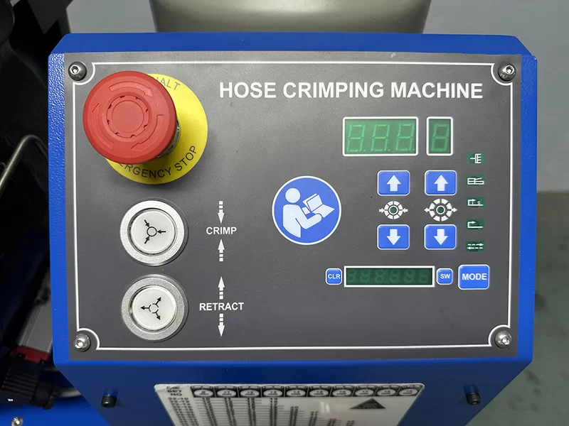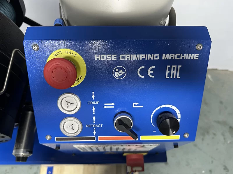 Precyzyjna kontrola ciśnienia: Wyposażony w niemiecki zawór elektromagnetyczny Argo-Hytos, precyzyjnie kontroluje ciśnienie i przepływ, zapewniając bezpieczną i niezawodną pracę w długotrwałych warunkach wysokiego ciśnienia. Dzięki temu prasa zaciskowa może precyzyjnie dostosować siłę zaciskania do materiału i specyfikacji węża, zapewniając wysoką jakość zagniatania. Nadaje się do zastosowań wymagających dużej precyzji zaciskania.